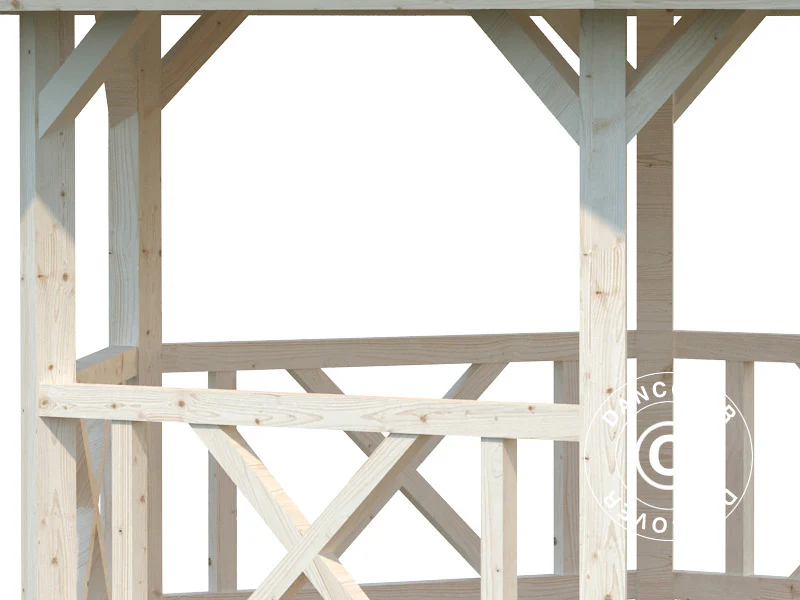 A sturdy and durable wooden gazebo for a dining area or lounge area where you can enjoy the garden in the shade and sheltered from a little rain or the falling dew at night. A strong and elegant gazebo with wooden railing on 5 sides.